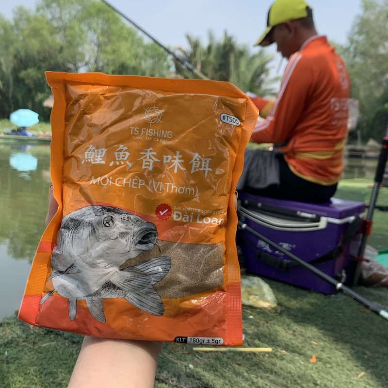 - Mồi câu cá chép: 1 gói TS Fishing (180 gram/ gói)