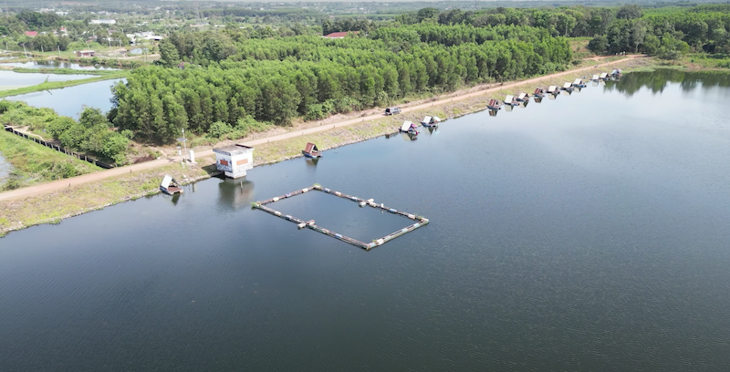 Dưới cái nắng chan chát, mặt hồ lấp lánh những tia nắng chiếu, gió mát và không khí trong lành. Xa xa là những cái chòi nhỏ cặp nhau tạo thành một dãy bè bo quanh mép hồ là nơi để anh em mình lựa chọn để thả cần câu cá.