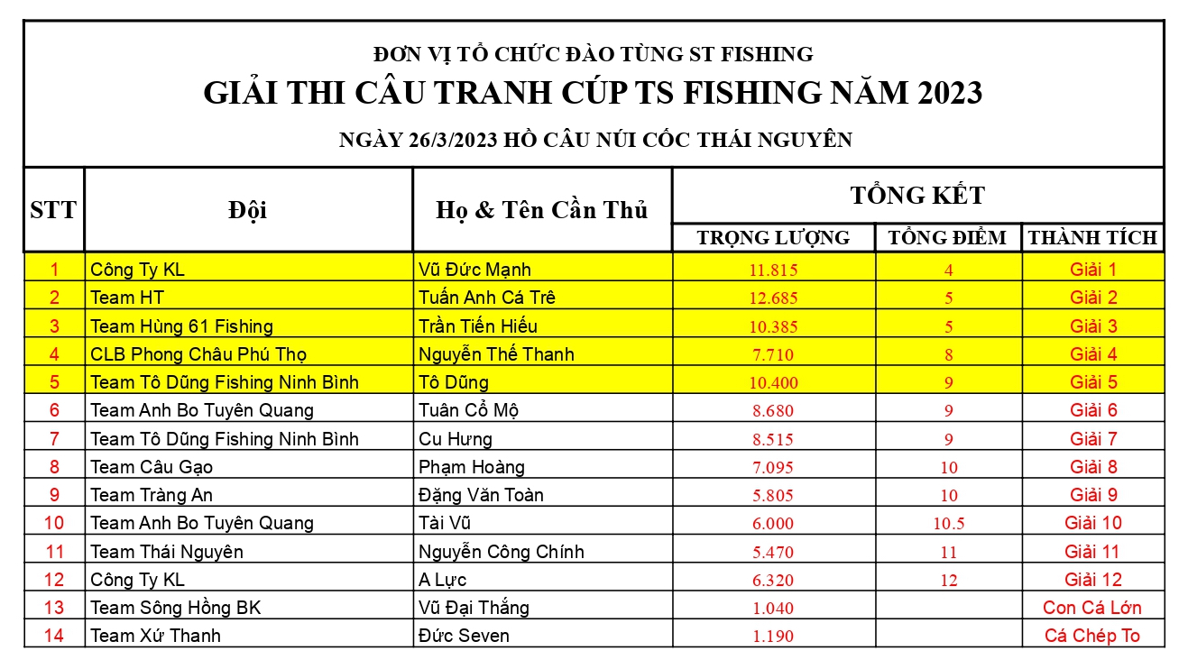 KẾT QUẢ GIẢI THI CÂU TRANH CÚP TS FISHING 2023 - RA MẮT MỒI CÂU TS FISHING KV MIỀN BẮC