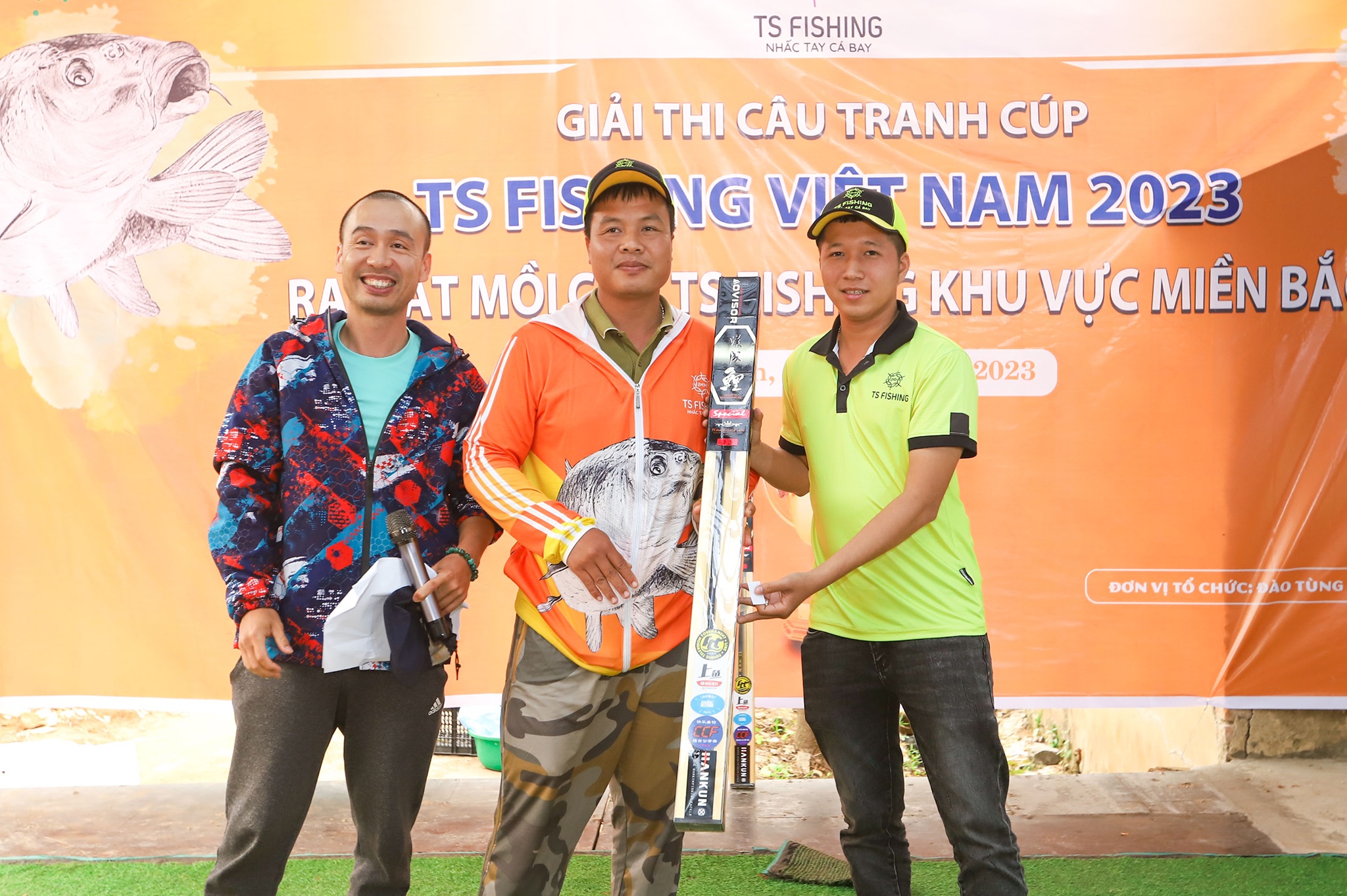 Ông Đào Tùng - Chủ shop đồ câu Đào Tùng ST Fishing - Đại diện Công ty TS Fishing trao giải cho các cần thủ xuất sắc nhất.