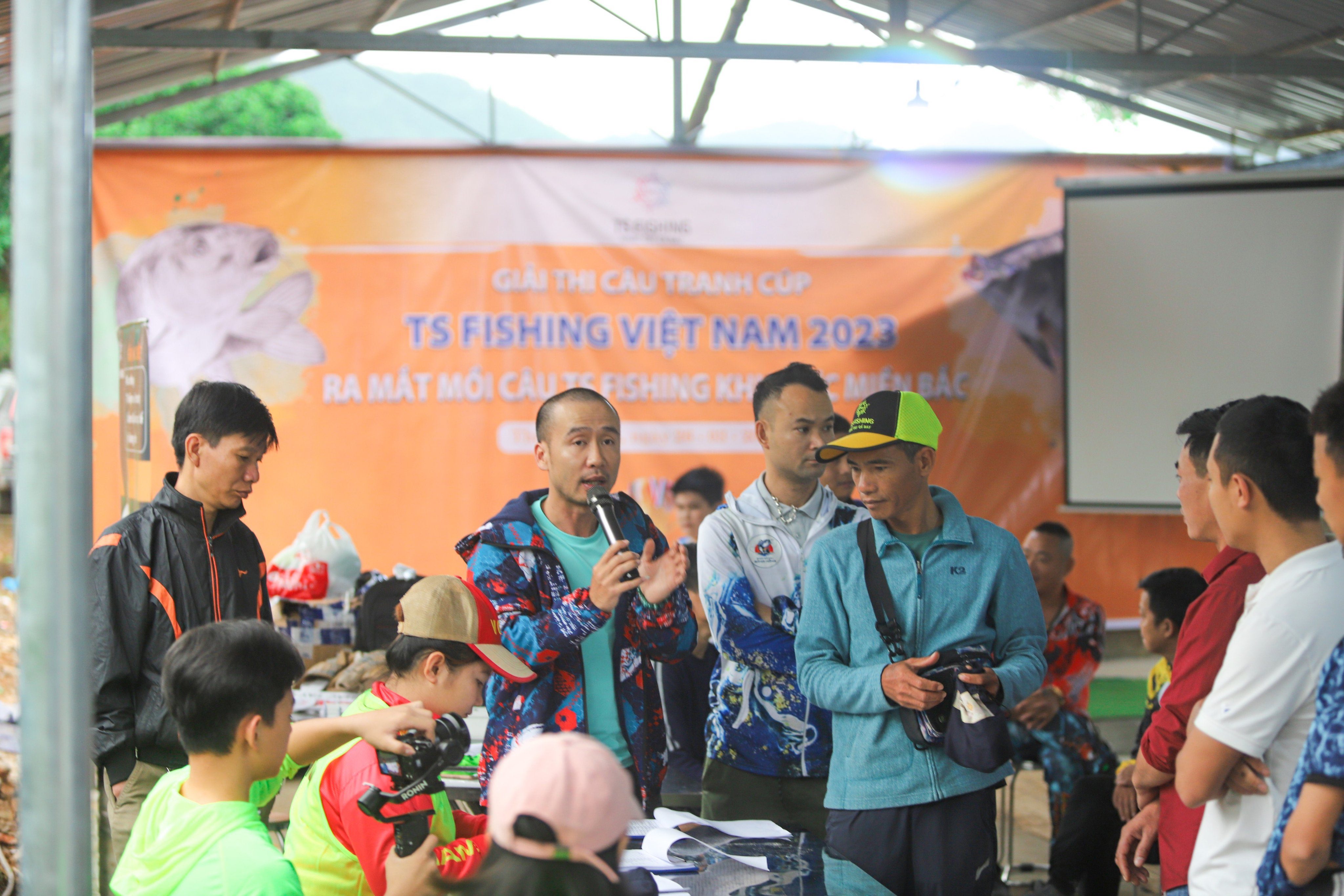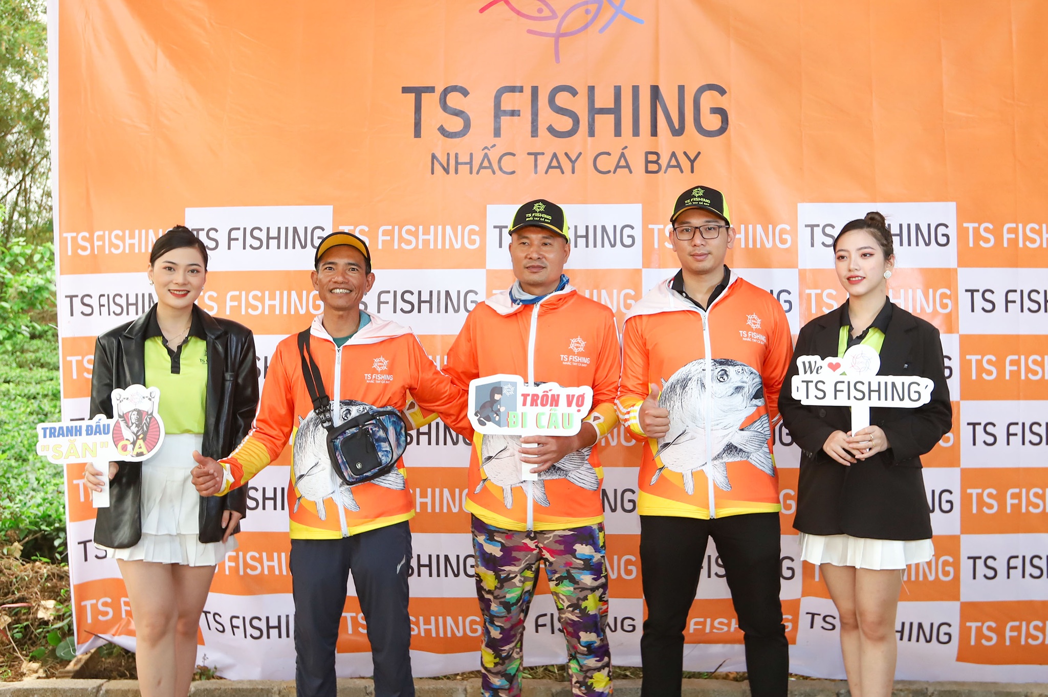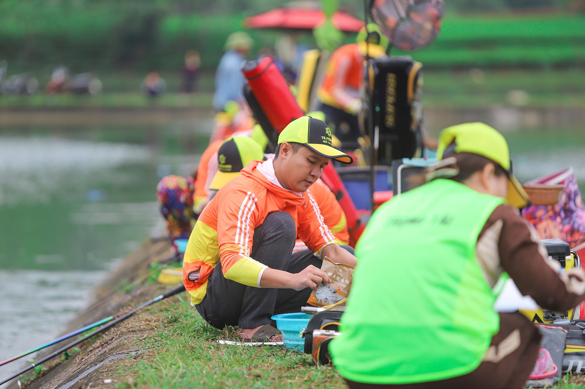 Các cần thủ giới câu cá tại miền Bắc trong màu áo cam vàng nổi bật của TS Fishing.