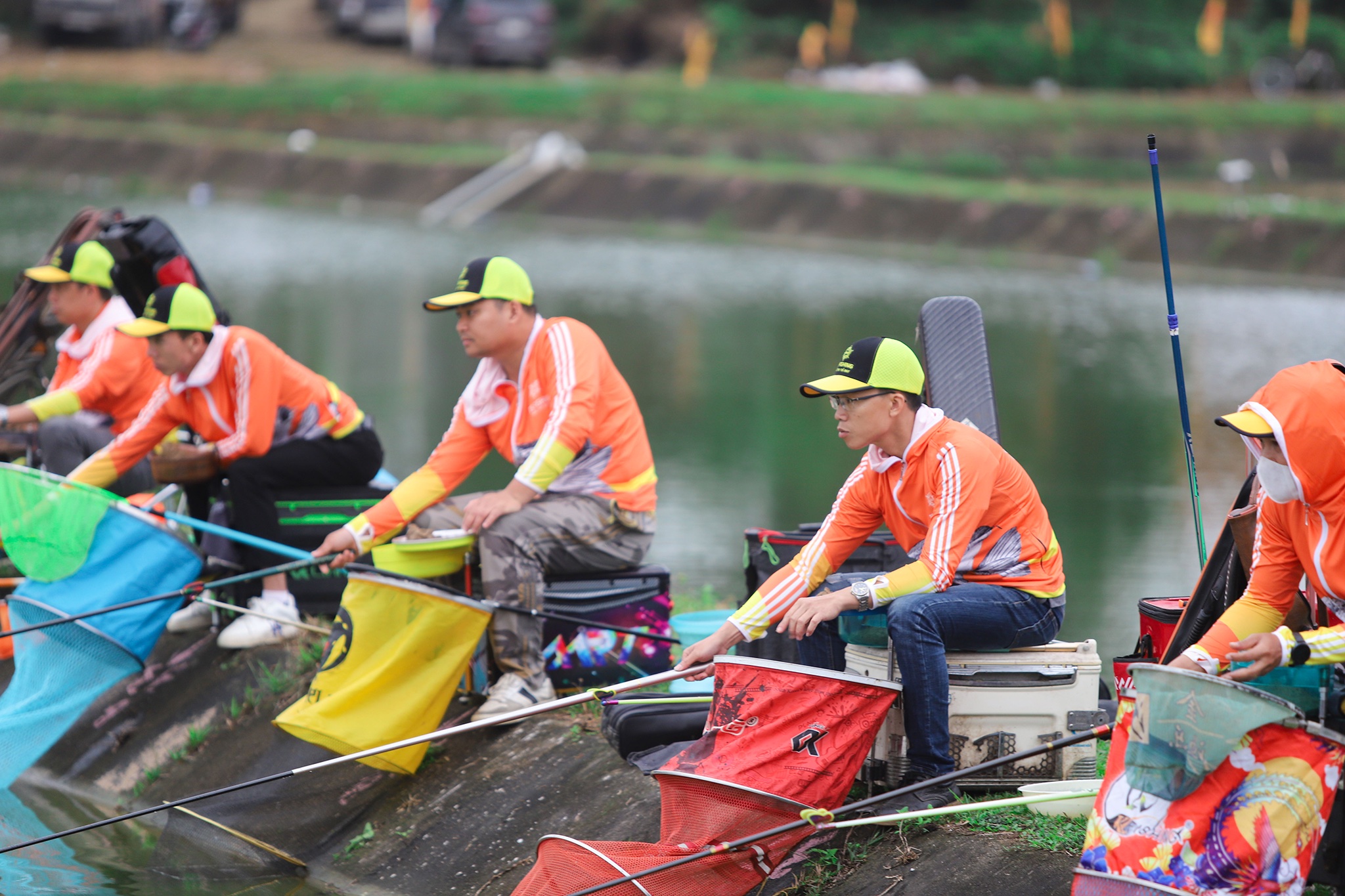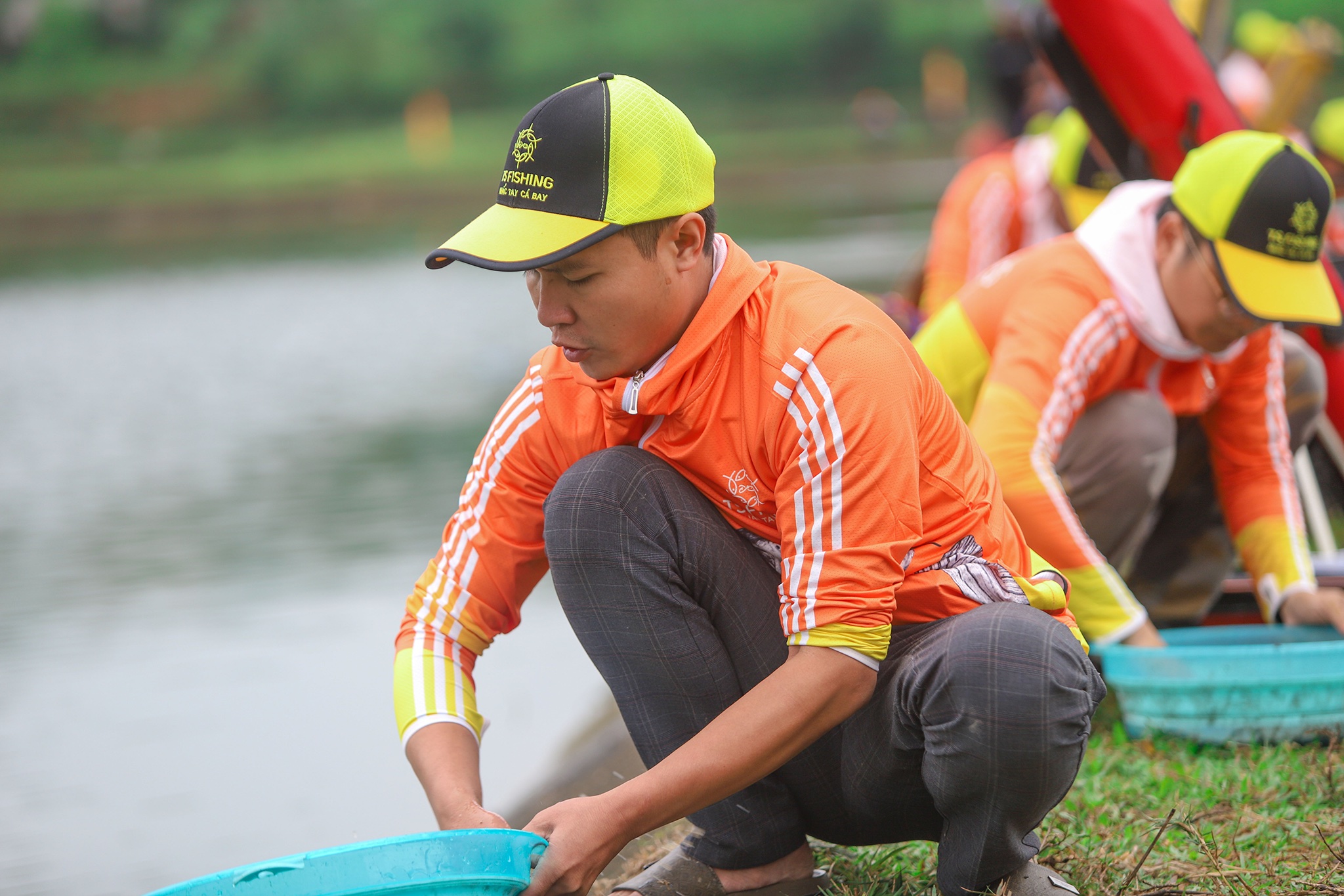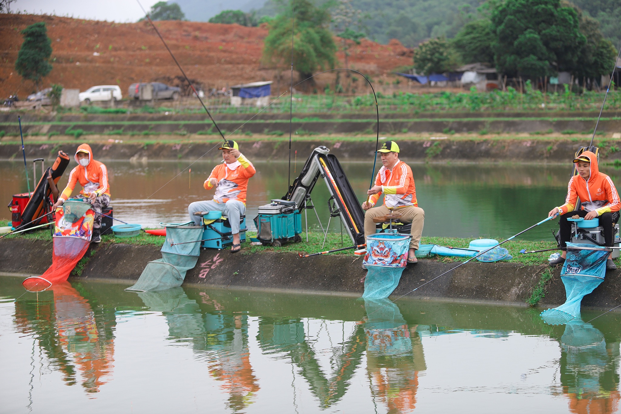 Các cần thủ giới câu cá tại miền Bắc trong màu áo cam vàng nổi bật của TS Fishing.