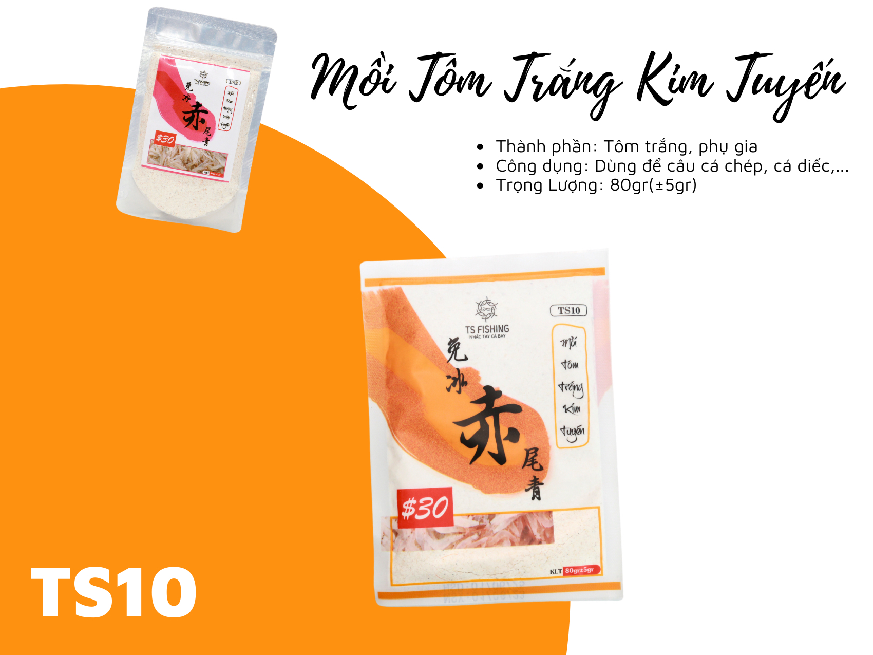 TS10 - Mồi Tôm Trắng Kim Tuyến trọng lượng 80 gram/ gói