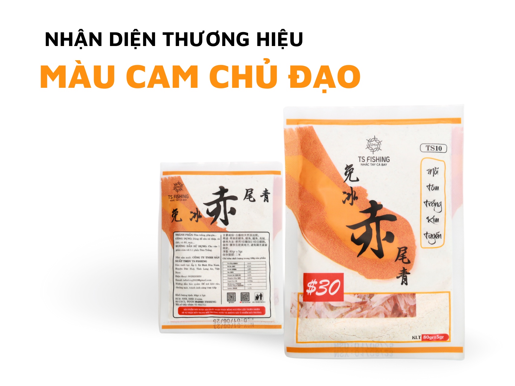 Tông cam chủ đạo tạo ấn tượng nhận diện mạnh mẽ cho thương hiệu TS Fishing