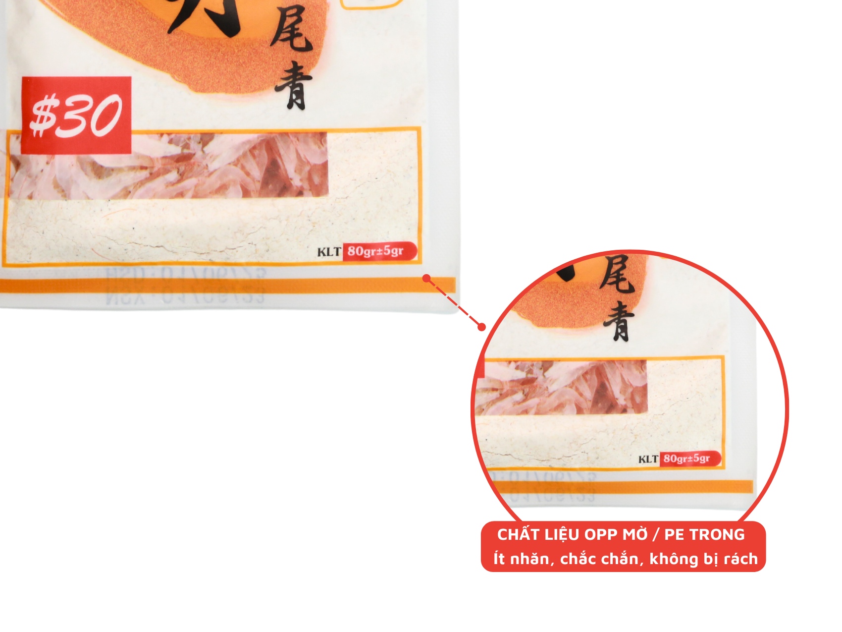 Chất liệu bao bì OPP mờ/ PE trong giúp cho gói mồi ít nhăn, chắc chắn, hạn chế tình trạng rách, bung khi vận chuyển